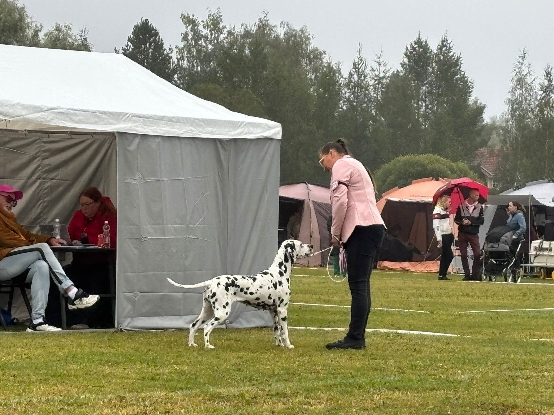 Lauantaina 12.4.25 osallistuimme Dalmatiankoirat - Dalmatinerna ry:n järjestämään ulkomuodon jalostustarkastukseen Lohjalla. Tarkastajana toimi dalmatiankoirien erikoistuomari Paula Rekiranta ja sihteerinä Laura Ripatti. Meidän joukkueesta olivat mukana Inka, Veera ja Antti. Itse tarkastus muistutti hyvin paljon näyttelytilannetta kehässä, seistä pönötettiin ja liikuttiin, että tarkastaja sai katsottua koirasta kaiken tarpeellisen. Kaikkien kolmen tulos oli hyväksytty ja nämä jalostustarkastuslomakkeet löytyvät KoiraNetistä koiran virallisella nimellä.